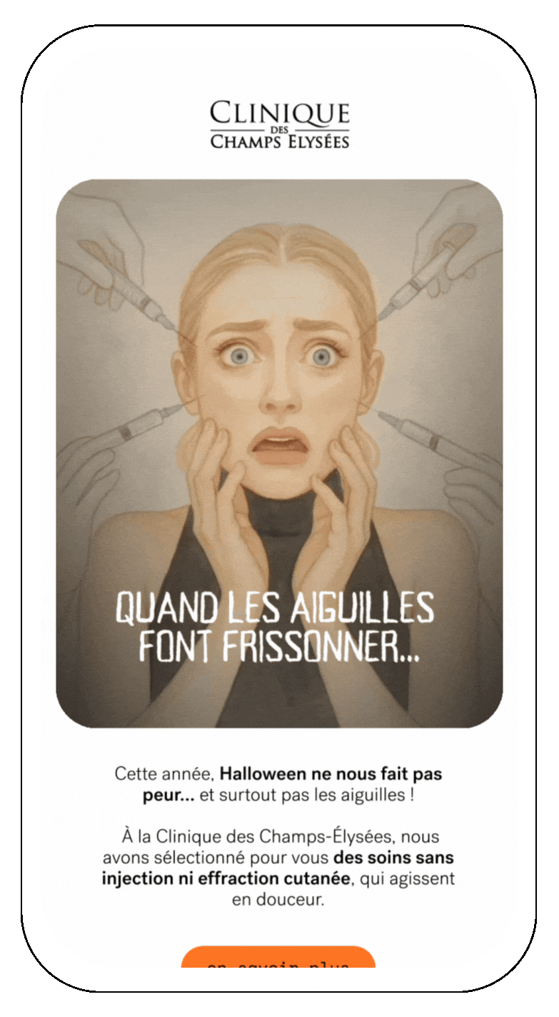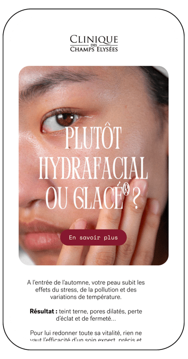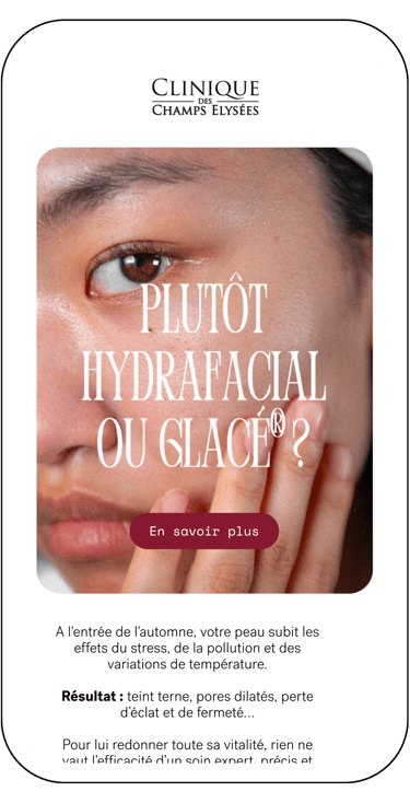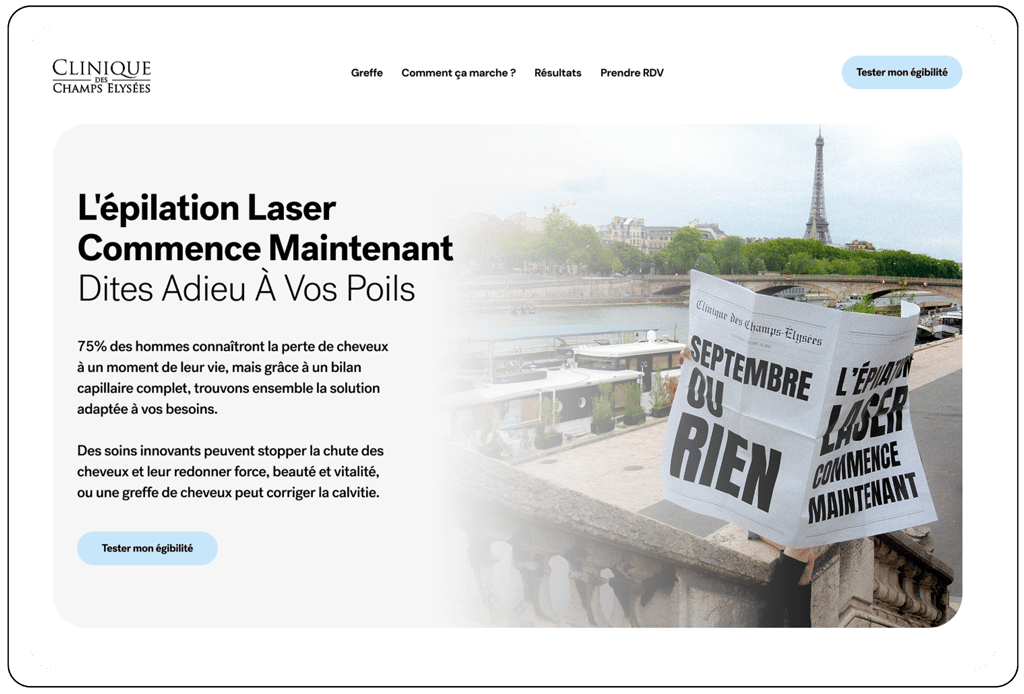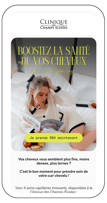 Création de l’ensemble des supports digitaux pour la Clinique des Champs-Élysées : landing pages (Unbounce) et campagnes email (Klaviyo).
