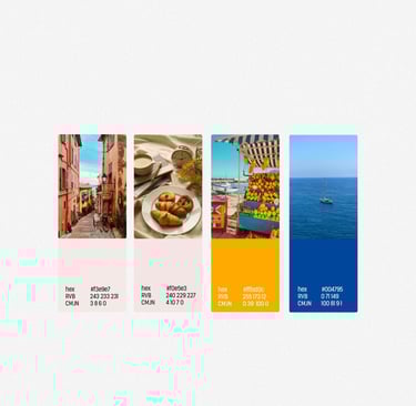 Côté couleurs, on retrouve évidemment le bleu profond de la Méditerranée, le jaune chaleureux du soleil et des citrons ainsi que le beige apaisant du sable