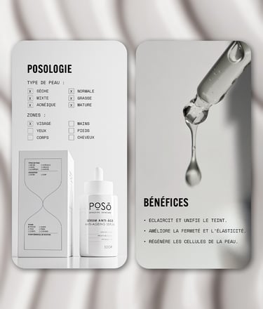 Poso est une marque skincare développée par des médecins esthétiques, dédiée à la préparation et à la réparation de la peau avant et après un acte esthétique.